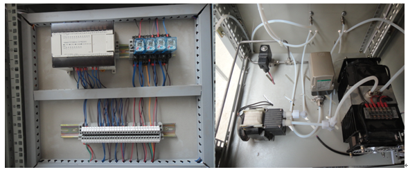本裝置以PLC作為控制中樞,實現(xiàn)焦?fàn)t煤氣的取樣、反吹、過濾及O2氣體含量的自動分析。當(dāng)“PLC”接收“分析”的指令信號后,裝置既自動執(zhí)行“分析測量程序”,這時進樣電動球閥自動打開,啟動取樣真空氣泵,從爐膛或管道中抽出樣氣完成樣氣的采集,樣氣經(jīng)過伴熱帶沿主流路繼續(xù)完成凈化、脫濕、脫硫等處理,保證進入儀器之前的樣氣達到超凈、恒溫的要求,完成氣體成分的自動分析并輸出標(biāo)準(zhǔn)電流信號,根據(jù)程序設(shè)定完成對爐膛或管道中氣體成分的自動檢測。當(dāng)“PLC”接收“反吹”的指令信號后,裝置既自動執(zhí)行“凈化反吹程序”, 同時另一路取樣裝置啟動,這時進樣電動球閥自動打開,高壓反吹氣流和震動控制對取樣管路進行震動及高壓反吹,確保取樣管線通暢。