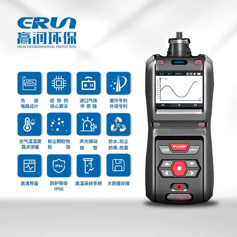 贏潤集團研發生產的ERUN-PG71S5-ACS手持式泵吸型嗎啉C4H9NO氣體檢測報警儀適用于鍋爐防腐劑、表面活性劑、抗氧劑、有機合成中間體、溶劑、橡膠硫化促進劑、增塑劑、醫藥等所有使用1,4-氧氮雜環己烷C4H9NO作為原料的生產儲運等工況場所,便攜式嗎啡林蒸汽濃度檢測儀可以快速檢測空氣中的嗎啉氣體的濃度含量,手持式嗎啉氣體泄漏報警器采用2.5寸高清彩屏實時顯示嗎啡林蒸汽的濃度值,超標聲光振動報警,同時具有Ex ia ⅡC T4 Ga級本質安全型防爆功能和IP66級防水防塵功能,抗靜電和強電磁場干擾。