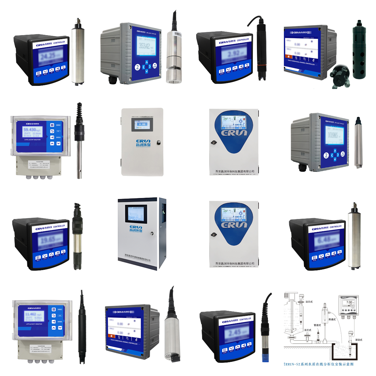 贏潤集團研發生產的ERUN-SZ1S-A分體式多通道水質在線監測儀器可以根據客戶不同需求,通過選配傳感器實現同時在線監測任意1~4種不同水質參數指標,包括/PH/ORP/電導率/TDS/電阻率/鹽度/溶解氧/濁度/懸浮物/污泥濃度/硬度/葉綠素a/藍綠藻/COD/氨氮/臭氧/余氯等參數。